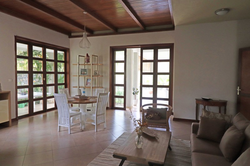 Great Family home located in a very quiet and residential area of Black River surrounded by nature and tranquillity and great for kids! The house is of 400 m2 on a land of 1,400 m2 with a double car port and parking spaces, manicured large garden with a lovely swimming pool. Double volume and high ceilings, the house offers 4 bedrooms ensuite all with air conditioning, nice living and dining area space, equipped modern kitchen with outside sink and a laundry room, large veranda which also includes a living area and a dining area overlooking the garden and surrounded mountains. The house also has a large mezzanine which can be used as an office space or else.