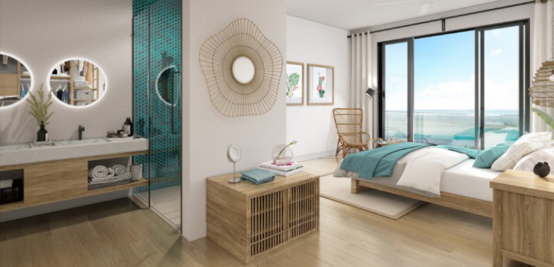 PFCA-D3 This splendide first floor apartment of 3 bedrooms is being launched in a beach front property development situated in Pereybere. This 3 bedrooms property which two of them are en-suite includes an open plan living space, a veranda, views of the beach and a service lift from the kitchen to the roof top terrace. The big private rooftop terrace of 104m2 includes a pergola, swimming pool, lounge and a dining area.
