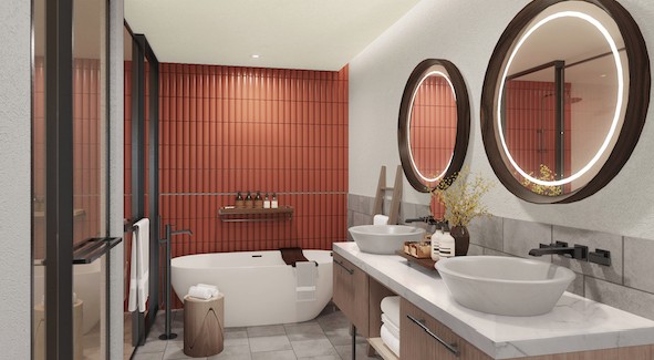 With three en suite bedrooms, a large living room and a spacious terrace, Infinity's interiors are bathed in the soft light that echoes the colours of the west coast. Some ground-floor apartments include a kitchen, laundry room and an outdoor courtyard.