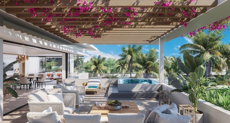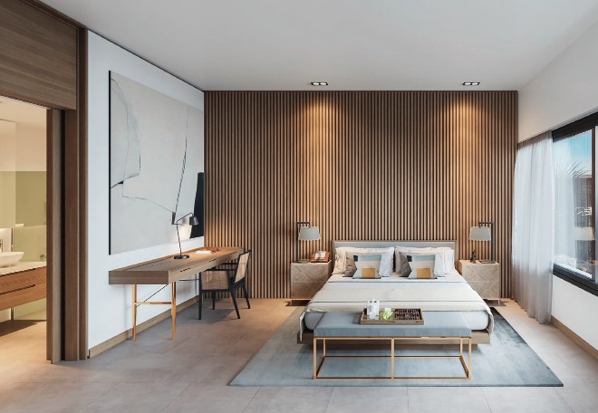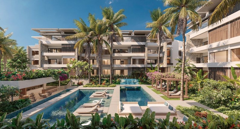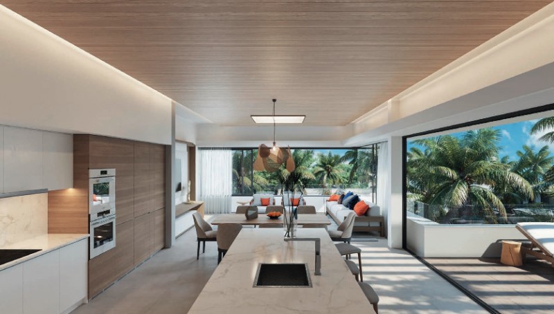 This residence is located a few steps from the glorious beach of Trou aux Biches, offers the ultimate refined living experience. These residences present unrivalled style and quality of life through location, layout, features and finishes. And they offer great value as a buy-to-let investment! So, living here means enjoying all the exclusive hotel privileges offered by the five-star Le Cardinal Exclusive Resort & Spa as well as Casuarina Resort & Spa. The design is inspired by the architecture of Casuarina Resort & Spa. Penthouses offer a perfect blend of indoor and outdoor living. The best thing about the uncluttered bedroom is the view from the picture window, which runs the full length of this space. The earthy colour palette throughout the home is even more grounding here and complements the vitality of the tropical greenery visible outdoors.