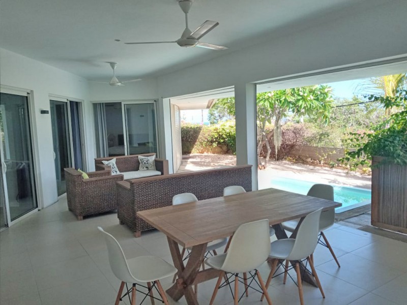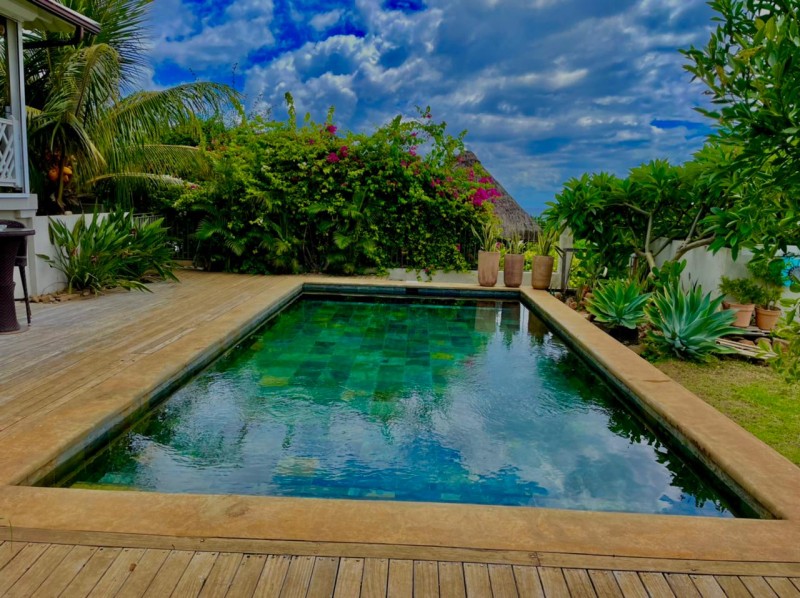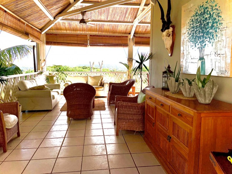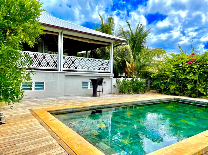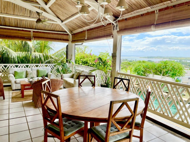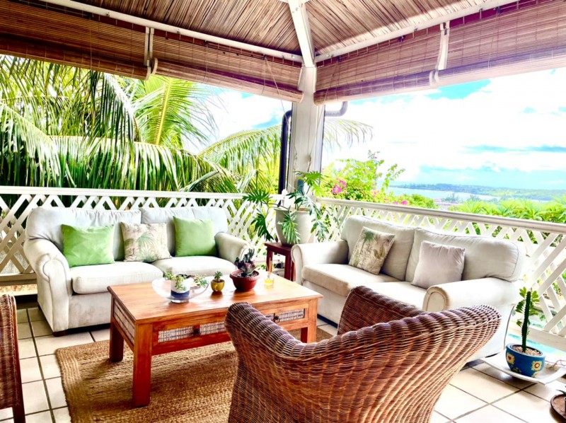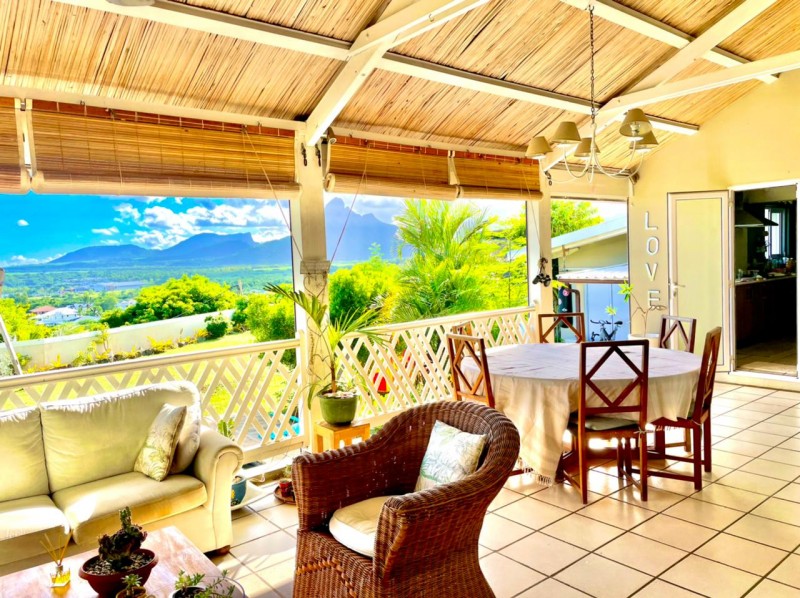 Discreet, elegant and comfortable, this beautiful property located on the heights of La Tourelle mountain in Tamarin, offering magnificent views of the lagoon and the mountains, is for sale. The property comprises 2 individual villas with 5 and 4 bedrooms respectively. The first villa is of 380m2 on a plot of 700m2 and offers 5 bedrooms, 3 bathrooms, guest wc, modern kitchen, large living room, laundry room, office space, wine cellar in the basement, large veranda, kiosk, bar, swimming pool and large awning. The second villa of 300m2 on a plot of 355m2 offers 4 bedrooms, 4 bathrooms, guest WC, living room, American kitchen, TV room, veranda, laundry room, awning, double closed garage, swimming pool.