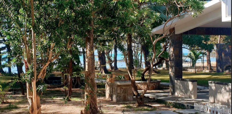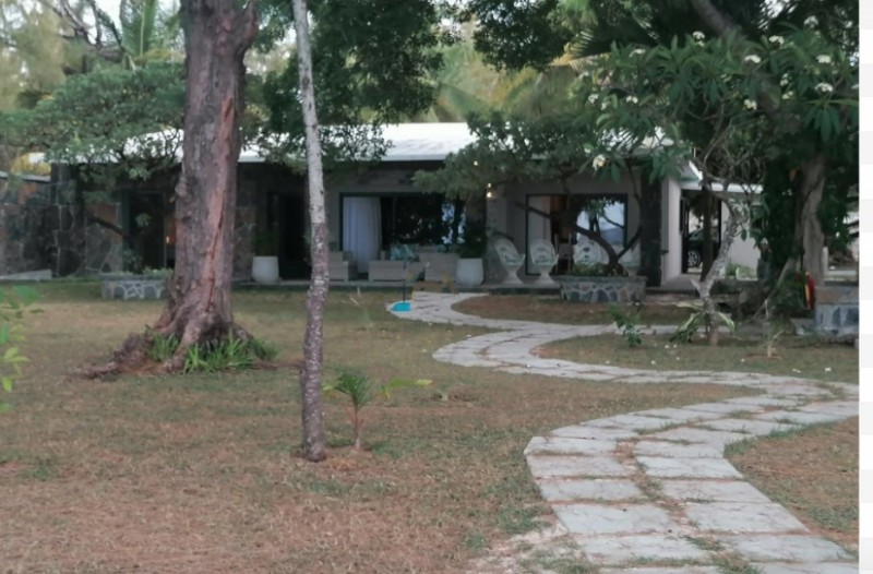 Magnificent property "les Pieds dans l'Eau. On a plot of land of half an acre overlooking a sandy beach on which was built a stone house of 200 m² living space. The building overlooks a beautiful garden with trees and has 3 bedrooms, one of which is en-suite, a large living room giving access to a nice Terrace, a fully equipped kitchen, a laundry room, 2 bathrooms. The facade is extended by a terrace which enjoys a magnificent 180degrees panoramic view on the lagoon. No renovation needed. Indoor parking for 6 vehicles. Very rare property. A must see. Price 85 000 000 Rs