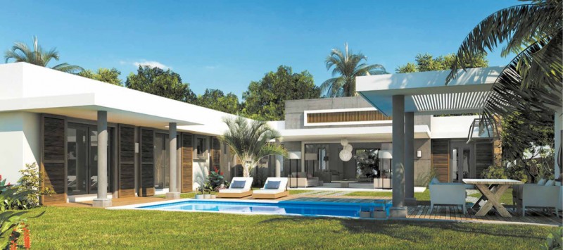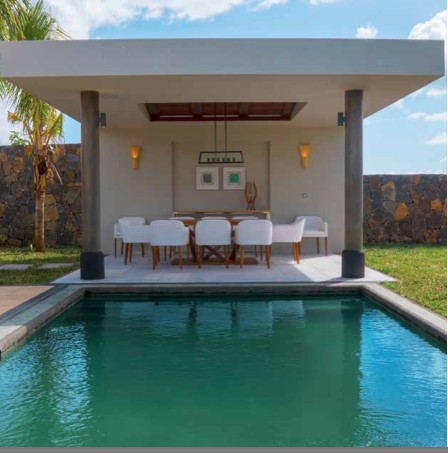 Design has been conceived in consideration of the tropical climate and indoor/outdoor living with large covered terraces. Inside, walls and barriers have been minimised to create the sense of openness. These generous interior spaces connect effortlessly with the gardens to create natural ventilation, light and uninterrupted views. Main living areas are separated from an independent bedroom wing to ensure privacy and convenience for families, whilst master bedrooms benefit from their own dressing room, outdoor shower, private courtyard and louvred doors opening onto a decked terrace. Orientated north to maximise its exposure to the sun, the pool unites the garden's key features, including wooden deck, gazebo, manicured lawns and tropical gardens.