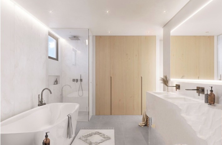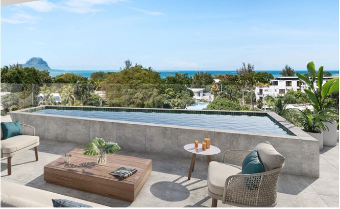 Spacious penthouses, each with a private pool overlooking the crystal clear lagoon. The Penthouses will be accessed from the lift lobby (card controlled) and corridor at the front of the building, so that each Penthouse can benefit of a beautiful sea view towards the iconic Morne mountain. The Penthouse offers the ultimate in luxury living having an ample and mostly covered private terrace with an outdoor pool and an amazing sea view stretching all the way to the iconic Morne Brabant Mountain. In these beautiful penthouses you will find 3 bedrooms en-suite and a guest toilet.