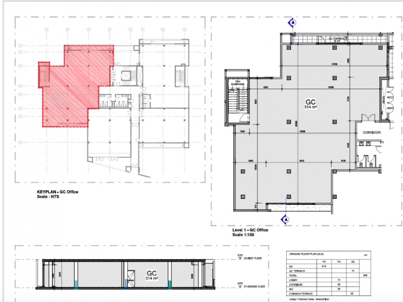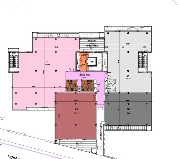 REFERENCE: PFVIV-SGC - Lettable area (Net area) of 315m2. Allowed terrace of 13m2. Common area allocation of 42m2. 8 parking spaces allocated on common parking area. Total GLA m2 (includes Common areas on Floors and Lobbies) of 370m2.